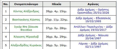 Σε ηλικία 39 χρονών είναι ο γηραιότερος ποδοσφαιριστής της Δόξας Δράμας που πετυχαίνει γκολ φορώντας τη φανέλα το μαυραετό στο στήθος !!!