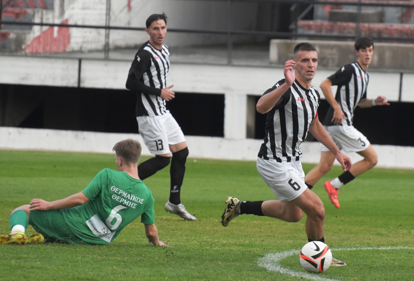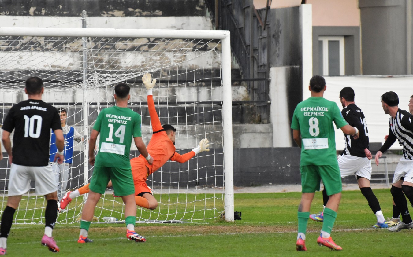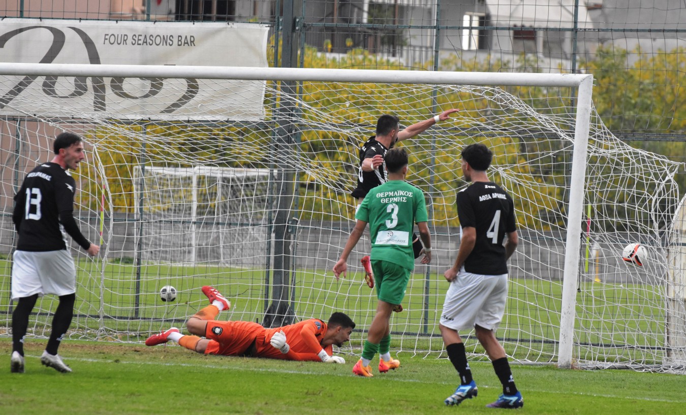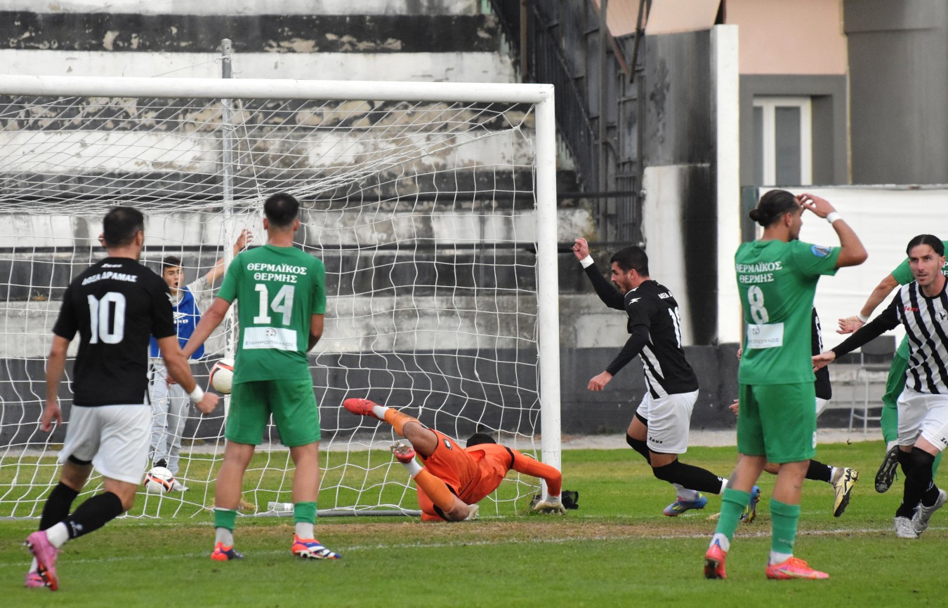 68′ σέντρα του Τζελίδη από τα δεξιά, οι αμυντικοί του Θερμαϊκού δεν μπορούν να απομακρύνουν και ο Μπάμπουρας από το ύψος της περιοχής πιάνει υπέροχο δυνατό σουτ στέλνοντας την μπάλα στην δεξιά γωνία του Γιώτα.
