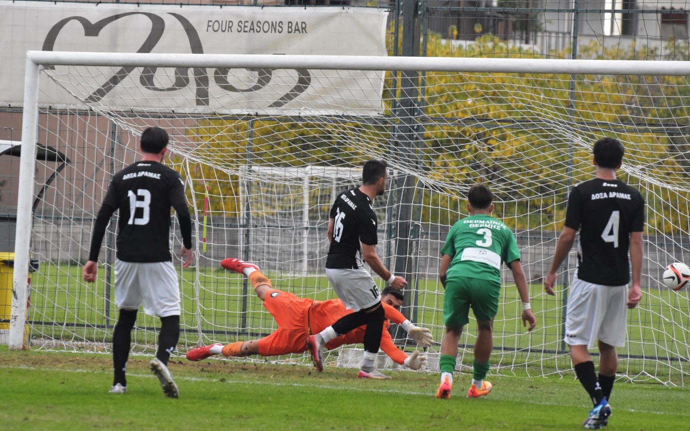 33′ κάθετη πάσα του Καλτσά στην πλάτη του Ιορδανίδη, ο Στεργίου θα πάρει την μπάλα και θα πλασάρει ωραία στην αριστερή γωνία του Μπεζυρτζή