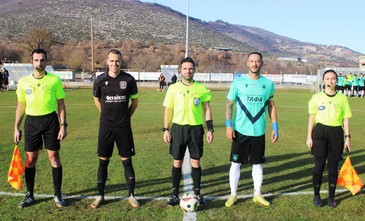 Το Καλαμπάκι κατάφερε να ανοίξει το σκορ στο 39’, όταν μετά από εκτέλεση κόρνερ, ο Μανίτσας πήδηξε πιο ψηλά απ’ όλους και με κεφαλιά έγραψε το 0-1.