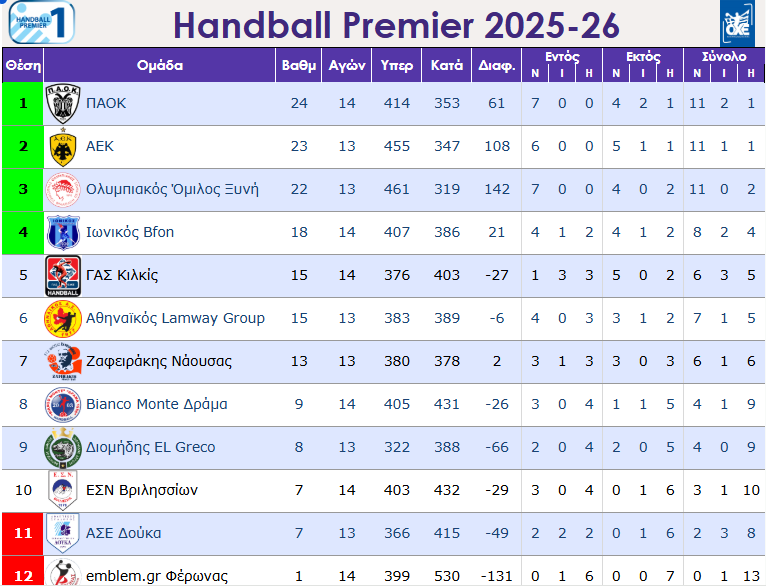 Τέσσερις αγώνες περιλαμβάνει η 15η αγωνιστική της Handball Premier αφού αναβλήθηκαν οι αγώνες ΠΑΟΚ- ΑΣΕ Δούκα για τις 7/2/26 και Βριλήσσια-Διομήδης για τις 11/2/26.